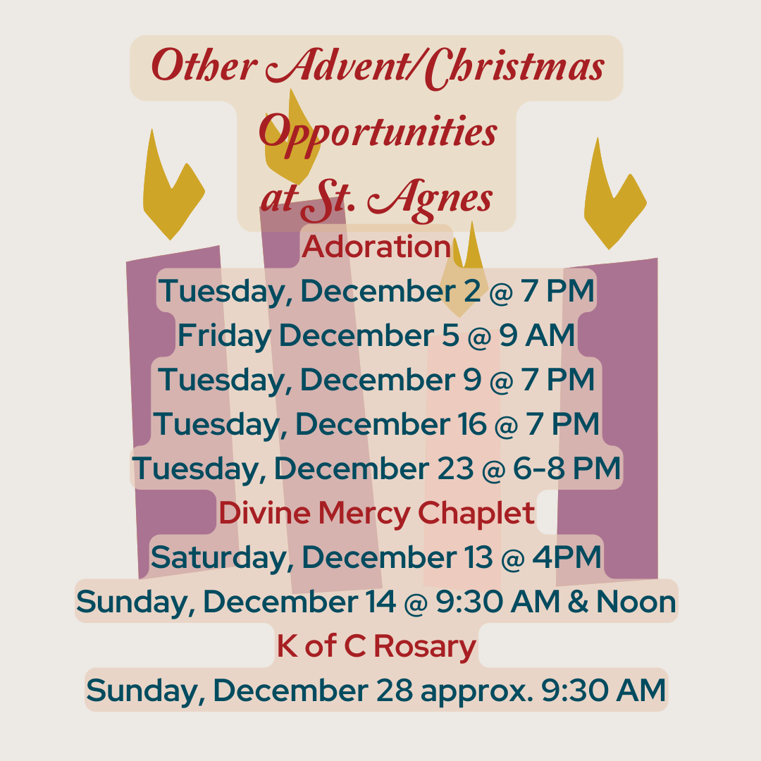 At St. Agnes, our parish bulletins are your go-to source for the latest news, events, and inspiration. Each week, we share important updates, spiritual reflections, and opportunities to connect with our vibrant community. Stay informed and engaged with us!